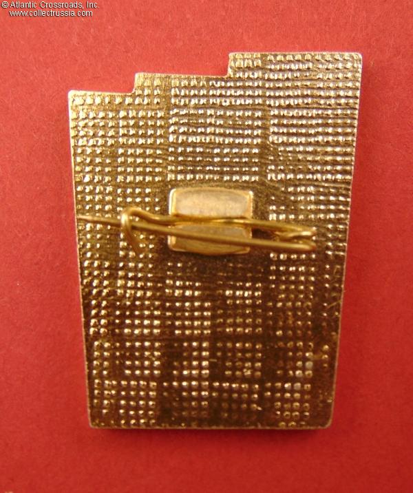 Aluminum, paint, lacquer; 34.0 x 27.0 mm. Shows the Order of the Red Banner of Labor awarded to the enterprise in 1976 for outstanding achievements. Excellent condition.
