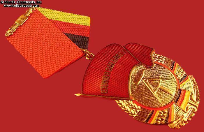 The Banner of Labor (original name "Banner der Arbeit") was instituted on 4 August 1954 in one class. On 8 August 1974, it was divided into three classes. The 1st class was the highest, and each class included a cash award. The order was awarded to individuals and collectives for excellent and long-standing service in strengthening the GDR, especially for outstanding achievements in national economy.