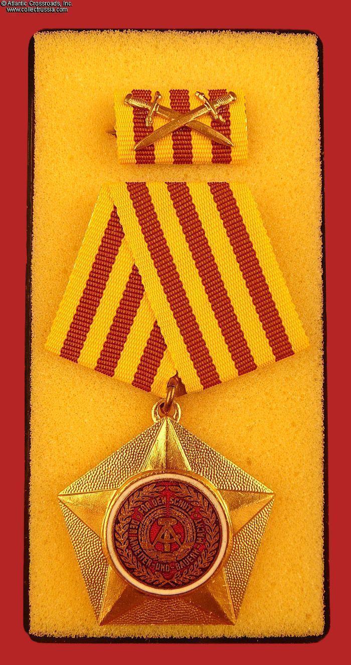 The order (original name "Kampforden für Verdienste um Volk und Vaterland" was instituted on 17 February 1966, in three classes: bronze, silver, and gold. It was the second highest military decoration in the German Democratic Republic, awarded to members of the NVA for outstanding service or merit in heightening the combat strength and readiness of the National People's Army; safeguarding the state borders of the German Democratic Republic; or strengthening and improvement of the socialist home defense.