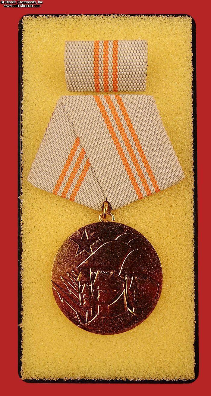The medal (original name "Medaille der Waffenbrüderschaft") was established in 1966 in three classes (bronze, silver, and gold), and was presented to NVA soldiers and civil employees, members of the Stasi, members of the armed forces of other Warsaw Pact countries, and individuals of friendly socialist countries for strengthening the cooperation and brotherhood in arms among the armed forces of the Warsaw Pact.