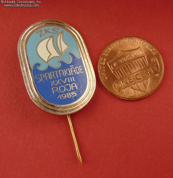 Badge of a Participant of the XXVIII Spartakiada (Sports Tournament) of Fishermen Collectives of Latvian SSR in the Village of Roja, 1985.