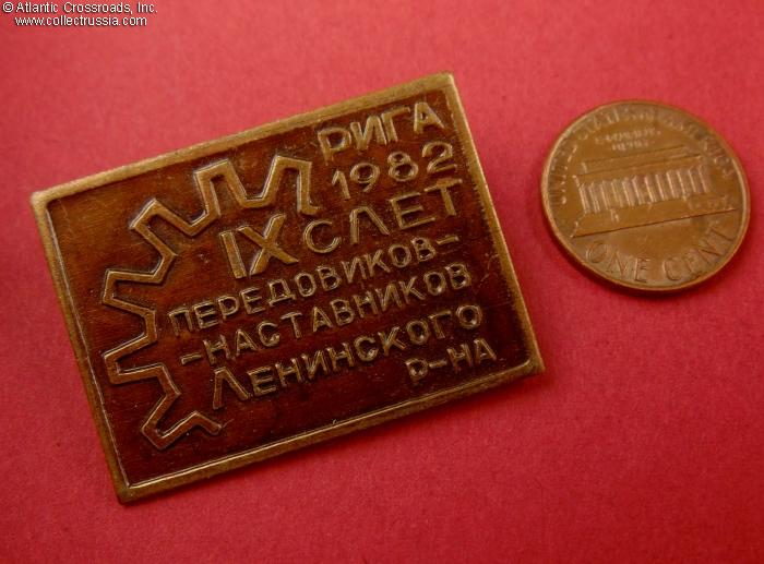Badge of a Participant of the IX Conference of the Foremost Workers / Mentors of the Lenin District of Riga, Latvian SSR, 1982.
