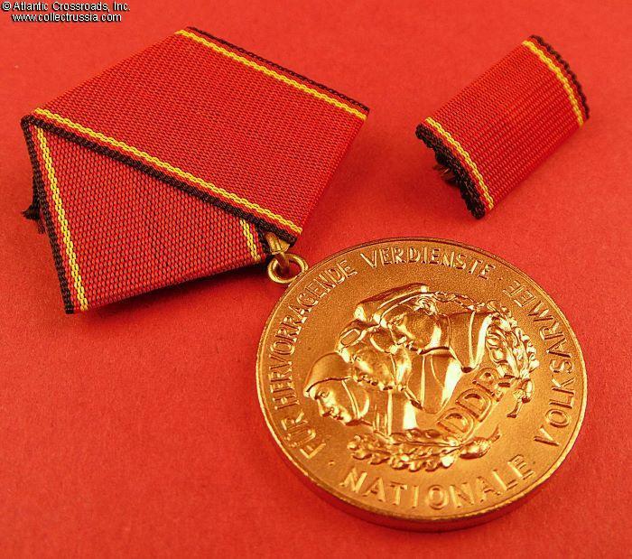 The medal (original name " Verdienstmedaille der Nationalen Volksarmee") was established on 1 June 1956 in three classes - bronze, silver, and gold, awarded for outstanding merit and personal readiness in support of increased combat capabilities and readiness of the National People's Army.
