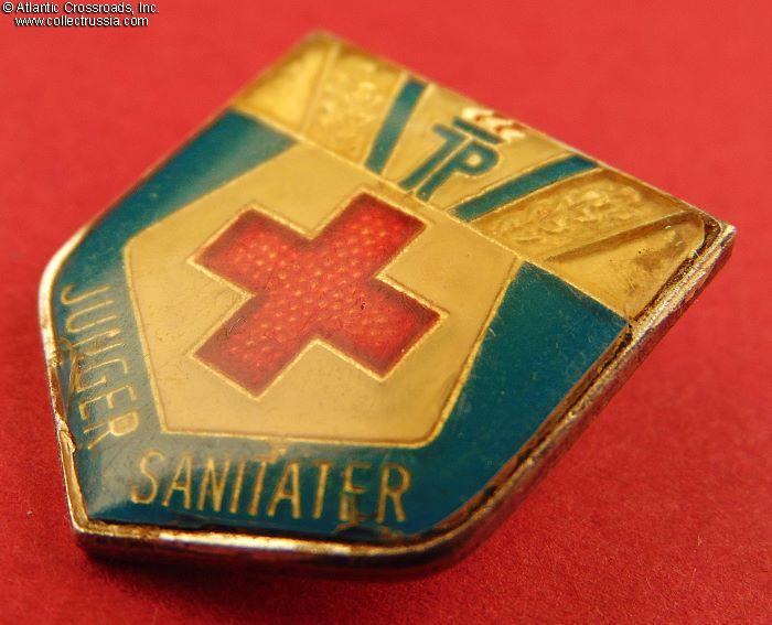 The Young Paramedic badge was awarded to members of "Thalmann Pioneers", the East German communist youth association for students of grades 4 through 7 who completed a paramilitary course as a field medic, part of the overall military preparedness program.