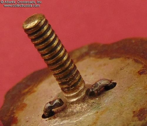 Very fine to excellent condition. The deep-red enamel is slightly dulled but retains enough translucency to reveal the herringbone pattern underneath. The enamel has a single minuscule surface flake near the edge at approx. 9 o'clock, no other wear visible even under a 10x magnification. The details of Stalin's bas-relief are nearly pristine, and a good amount of its silver finish is still present. The silver plating on the reverse is perfect. The attachment wires are intact and tight. The screw post is full length, well over 9.5 mm. Comes with original maker-marked screw plate which is somewhat loose due to the worn threads but will stay in place if undisturbed.