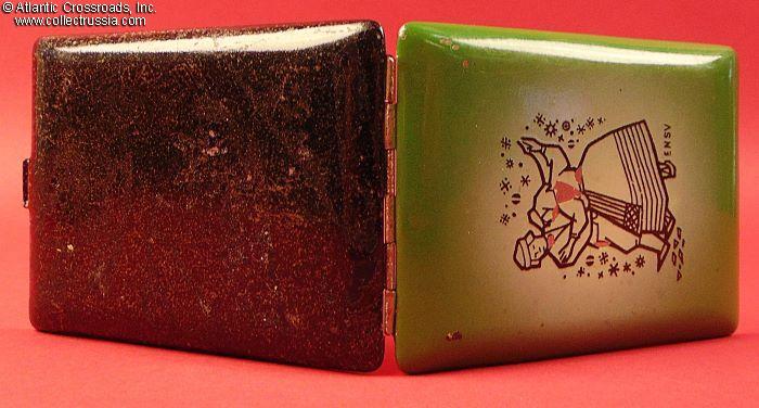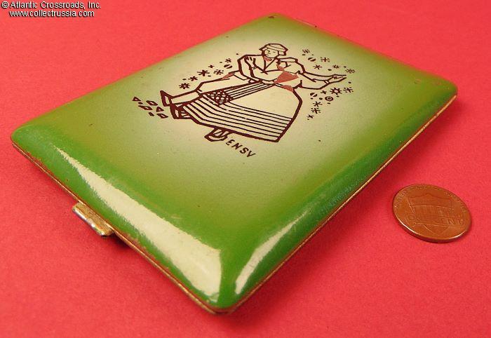 Cigarette Case with Folk Dancers, Marked ENSV, Estonian SSR, circa 1960s-70s.