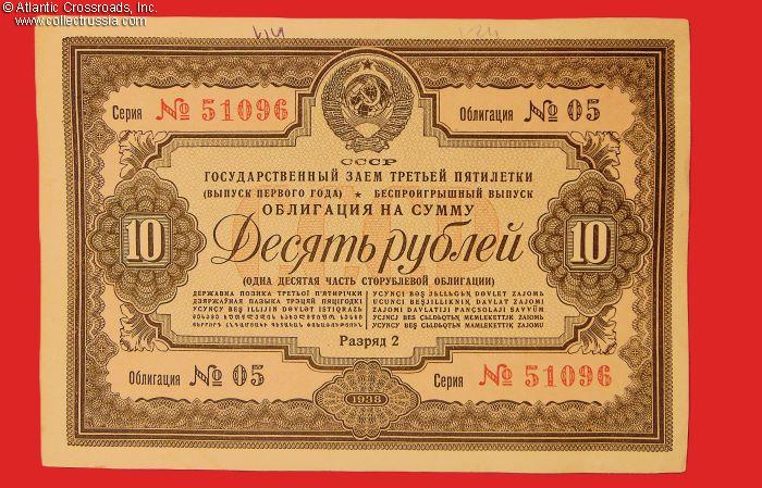 Third Five-Year Plan Bond in the amount of 10 rubles, 1938.