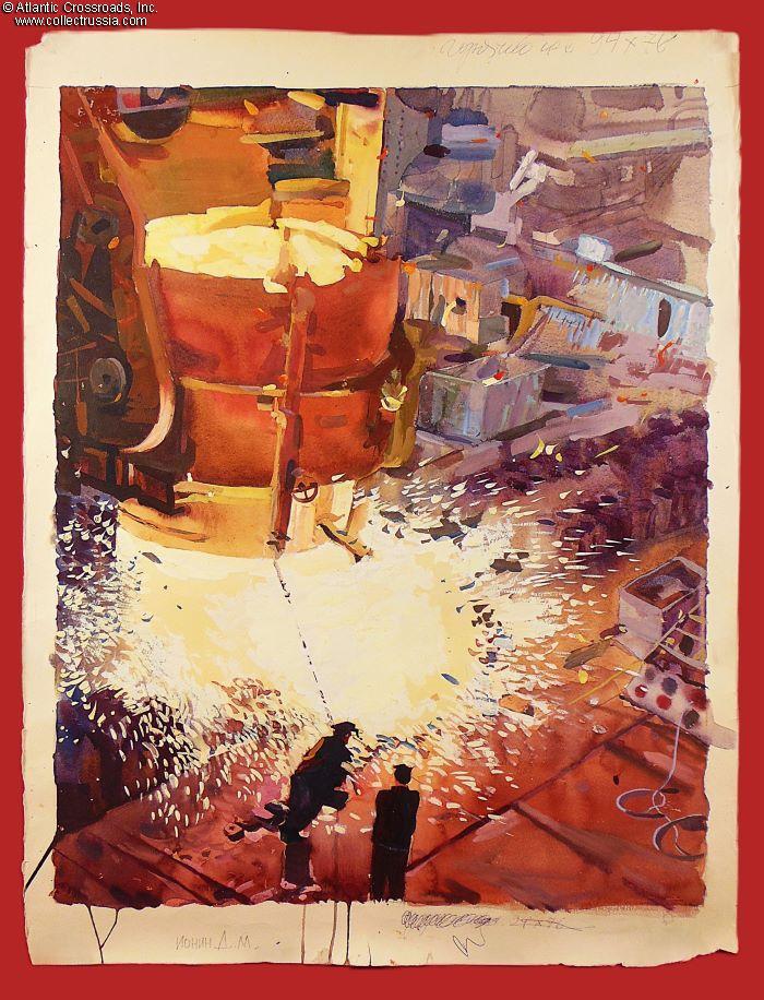 Factory Fugue, Original Artwork Hand-Engraved on Zinc(not a lithograph!) Large 21" x 29" Format, Mixed Technique, by V. Novichenko, Inventor of the Technique, Artist Signed, 1977. EXC condition.