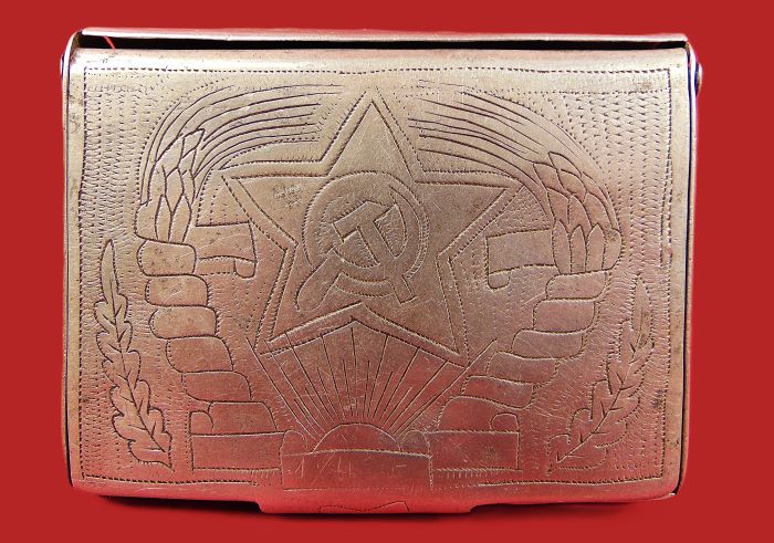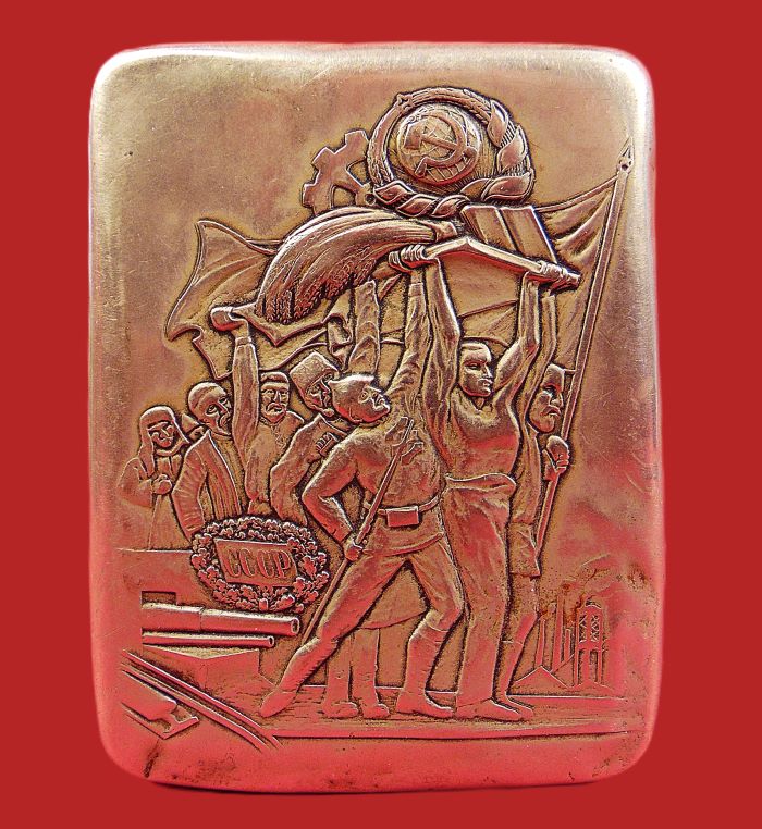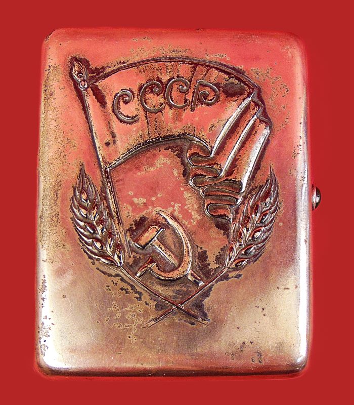Silver Cigarette Case with Lenin's Tomb and Kremlin Wall by the Moscow Art Jewelry