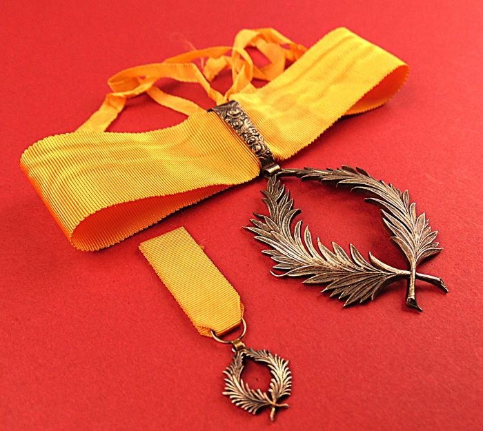 Order of the Badge of Honor, Type 4, Var. 1, #235968, c. mid-1960s. Relatively scarce early "Hollow Back" version featuring hand-engraved serial number w/o underline. The workers have less "child-like" proportions than on the earlier versions. In excellent condition and includes original steel suspension.