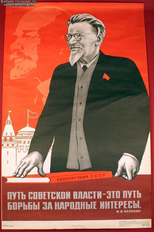 Celebration of the Constitution (Fundamental Law) of the Soviet Union features Mikhail Kalinin, titular head of the USSR from 1922 to 1946.