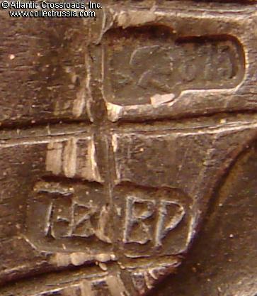 The reverse has stamped maker mark "т-во ВР" and silver hallmark "875". Comes with original wing nut bearing the hallmark of the Leningrad Assay Inspection on one of the loops.
