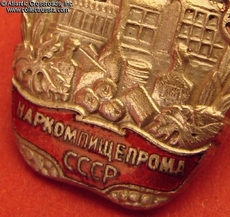 Badge for Excellence in Socialist Competition, Narkomat of Food Industry, Type 2, #16031, circa 1945-46.