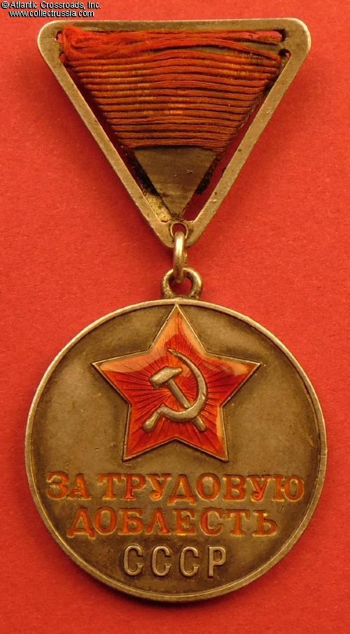 Medal for Valiant Labor, Type 1, Variation 2, #21631, with award document, awarded in October 1943 to Boris Zakharenko.