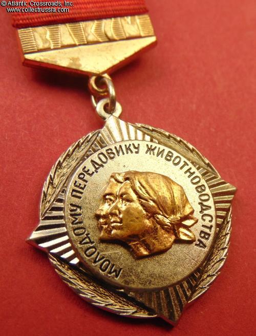 VLKSM Central Committee Medal (award badge) "To a Foremost Young Worker of Animal Farming", 1970s - early 1980s.
