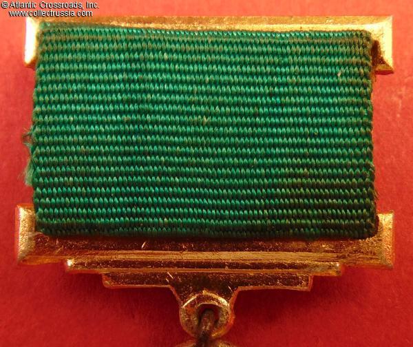 In excellent condition. The paint and lacquer finish are perfect. On the reverse, there is a bit of oxidation on the base of the pin and attachment of the plaque that holds the ribbon in place, but all the parts are completely sound.