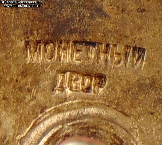 Silver, enamel; measures 48.0 mm in height, 49.8 mm in width; weighs 31.8 grams not including the screw plate. This piece is among the earliest Red Stars with "Monetnyi Dvor" mint mark that came after the "Mondvor" type. Features slightly arched mint mark and very characteristic calligraphy of the serial number engraving. Manufactured in 1940 at the Leningrad Mint. The cherry red enamel is of superb quality matching that of the "Mondvor" and "Goznak" issues. Note that the serial number is near the bottom of the entire Type 4 Var. 1 range (from 12000-24000) which means that this