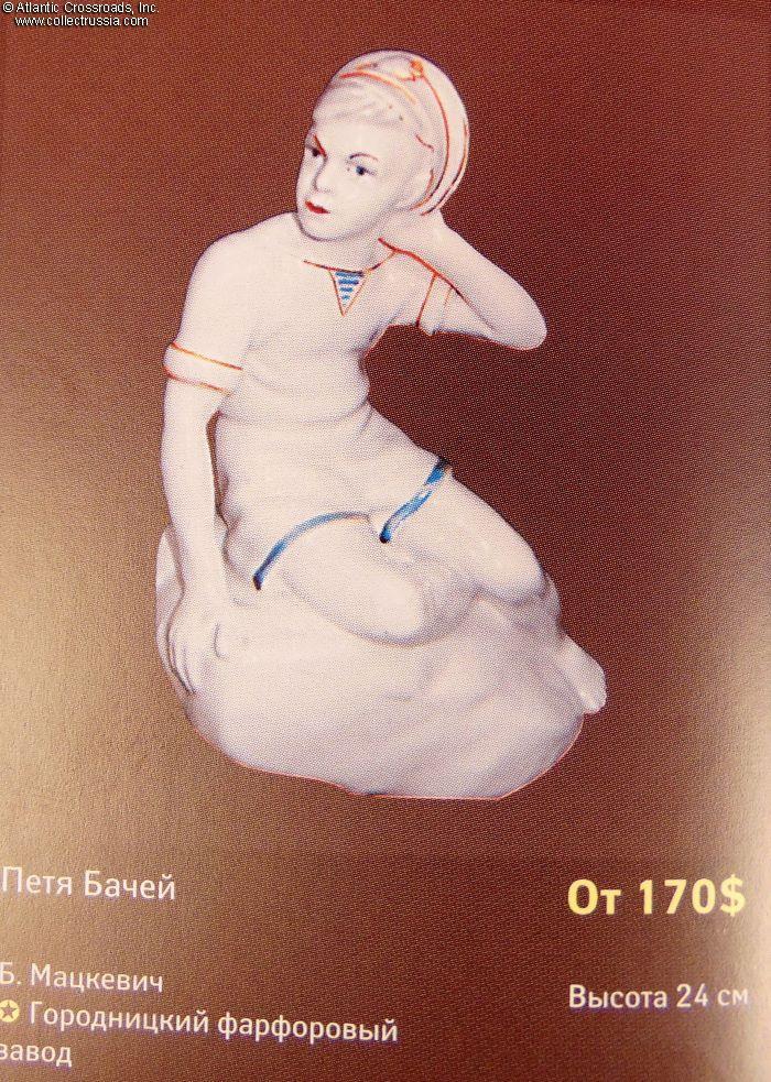 Petya Bachey, glazed porcelain figurine by Gorodnitsa Porcelain Factory, 1957-1960.
