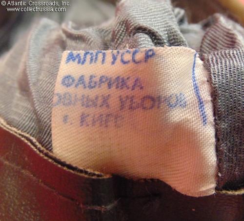 In olive drab wool gabardine with cotton liner and red piping. The sweat band is in ersatz leather. The liner has a sewn-in tag of the Kiev Headgear Factory, Ministry of Light (Consumer Goods) Industry of Ukrainian SSR. Stamped Size 55 on the liner (US size 6 7/8 / Small.) The hat badge is a subdued star, an original EM model from 1960s-80s (technically, incorrect for an officer's uniform of the late Cold War era but ideal for a WW2 Red Army officer impression.)
