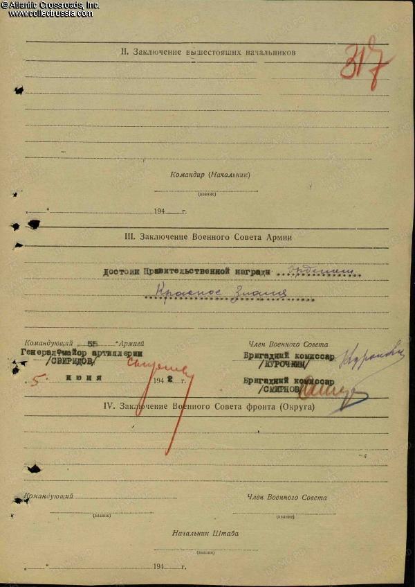 Interestingly, the ID does not show any biographical data of its owner or the date of issue - all obviously omitted because of the field conditions in which the ID was issued. It does show however that Gofman was appointed Chief of "Sanitary" (i.e. medical) Department of the 55th Army on 31 January 1942. The ID was probably issued within a few days or weeks after his appointment.