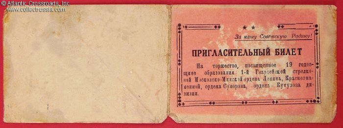 Invitation to Celebration of the 19th Anniversary of the 1st Guards Rifle Division, 23 December 1945.