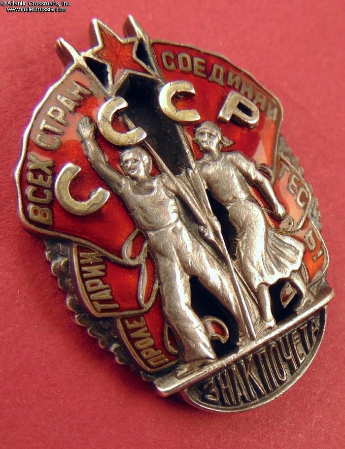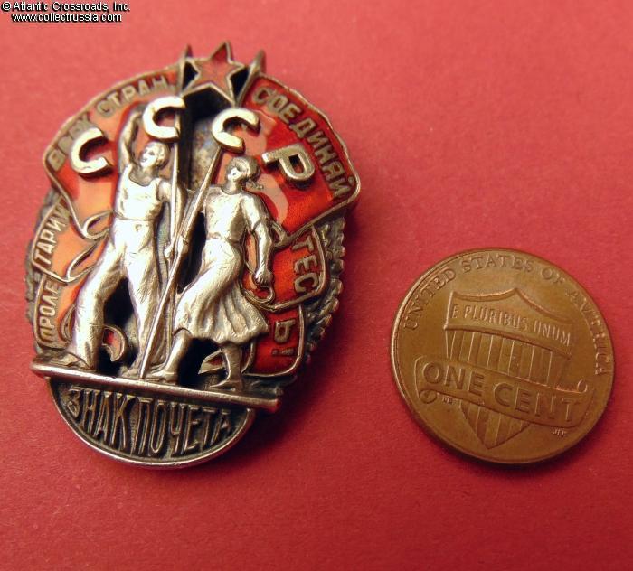 The "Small" version of the Badge of Honor is among the rarest Soviet awards: only about 1500 were ever produced, and many were replaced later with the more "modern" full-size types. Another major factor contributing to its rarity is the fact that a sizable percentage of the issues were to top party officials and NKVD officers. At the time, they were prime candidates for extermination in the next wave of Stalin's purges - which meant that their orders would have been confiscated and melted down for scrap.