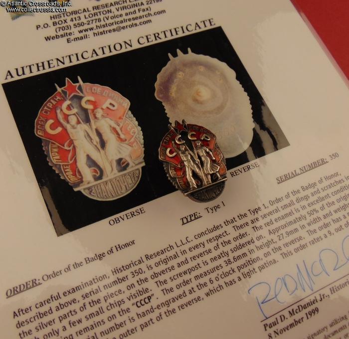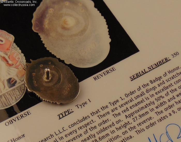 Order of the Badge of Honor, Type 1 Variation 2, #350, circa 1936.