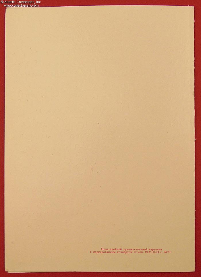 The size is continental standard 6" x 4", unmailable without a cover, publisher and circulation unknown. Quite uncommonly, the card comes with an insert with text in calligraphic cursive, reading "Congratulations and best wishes on 1 May, the day of International Workers Solidarity!" The handwritten inscription is addressed to a WW2 veteran and contains well wishes on occasion of both May holidays - 1 May, and the Victory Day celebrated in the Soviet Union on 9 May.