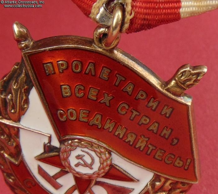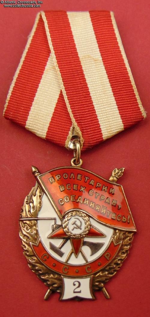 Order of the Red Banner, 2nd award, Type 5 Variation 1 Sub-variation 3 (Durov & Strekalov classification), #25778, awarded on 26 October 1955 to Navy Captain 2nd Class Fyodor Katasonov (Федор Алексеевич Катасонов) for 25 years of service in the military.
