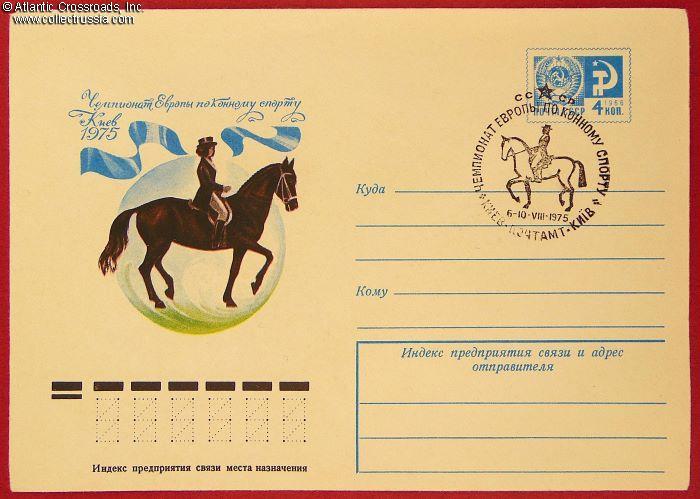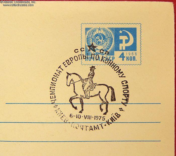 Special-issue Government Postal Cover with the First Day Cancel Commemorating the European Equestrian Sports Championship that took place in Kiev, Ukrainian SSR, 1975.