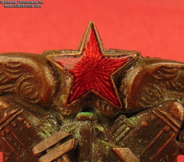 This piece is one of the first Soviet Air Force graduation badges, the type issued for only two years. In 1938, this series was replaced by a new series of badges, unnumbered, lighter-weight and of more streamlined design. The badges of the first series are rare. It is due in large part to the terrible attrition suffered by the Soviet Air Force cadres in the first weeks and months following the German invasion of the Soviet Union in June 1941. It also must be mentioned that the number of graduates of Soviet military aviation schools increased dramatically just before WW2, which of course reflects on the rarity of the early AF school badges in comparison with the 1938 series.