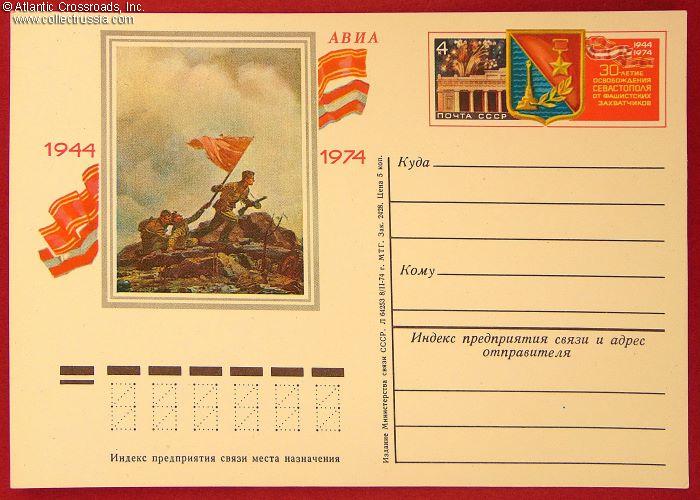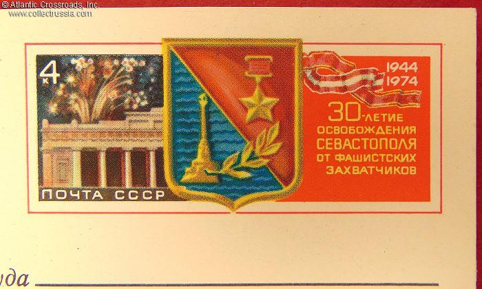Special-Issue Government Postcard Commemorating the 30th Anniversary of Liberation of Sevastopol from Nazi Occupation, 1974.