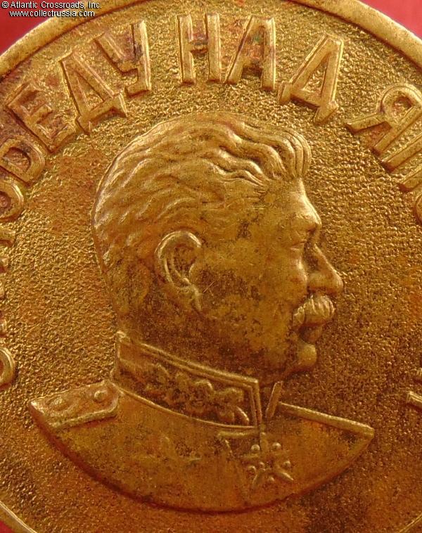 In excellent condition. Both sides are extremely well-preserved, completely free of any wear visible to the naked eye and have just a few microscopic contact marks that can be found only under a 10x magnification. The details of Stalin's bas-relief and lettering are perfect and exceptionally crisp. There is a light tarnish that adds interest and is not detractive, while the original "gilt" mint luster is present and bright in recessed areas throughout, especially on the reverse.