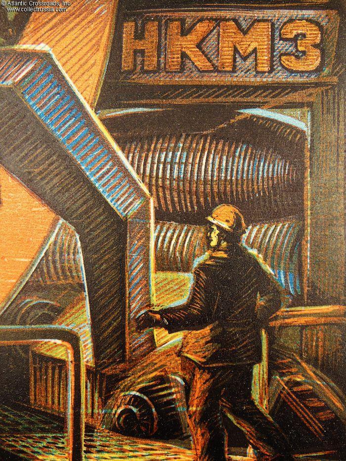 Valentin Novichenko (Валентин Алексеевич Новиченко, 1927-2010) was a well-known master of graphic arts from the Urals. He was born into a working-class family. His childhood impressions of industry and the construction of the Orsk Metallurgical Kombinat (group of factories) deeply affected his art.
