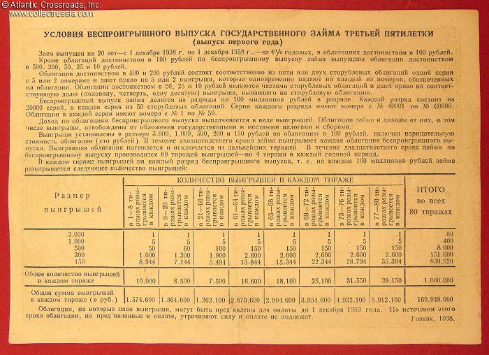 Aimed to finance the final stage of Soviet industrialization program, this bond was issued literally on the eve of WW2. The Third Five-Year Plan was never finished due to the German invasion of the Soviet Union in June 1941.