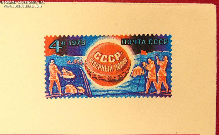The size is 6 ½" x 4 ½", with a pre-printed special-issue commemorative postal stamp. Postally unused, published by the Ministry of Communications of the USSR, circulation unknown. The 1979 expedition took place from 16 March to 31 May, when a group of people reached the North Pole on skis, raised the Soviet flag and left a sealed container with different objects inside symbolizing the peaceful nature of the labor of the Soviet people. This expedition was the culmination of seven years of preparation and smaller-scale expeditions testing the possibility and feasibility of such a difficu