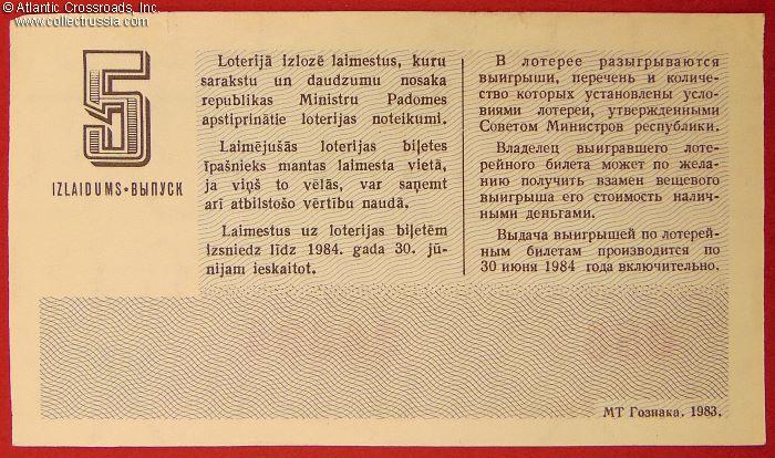 Latvian SSR Lottery Ticket, June 1983 drawing.
