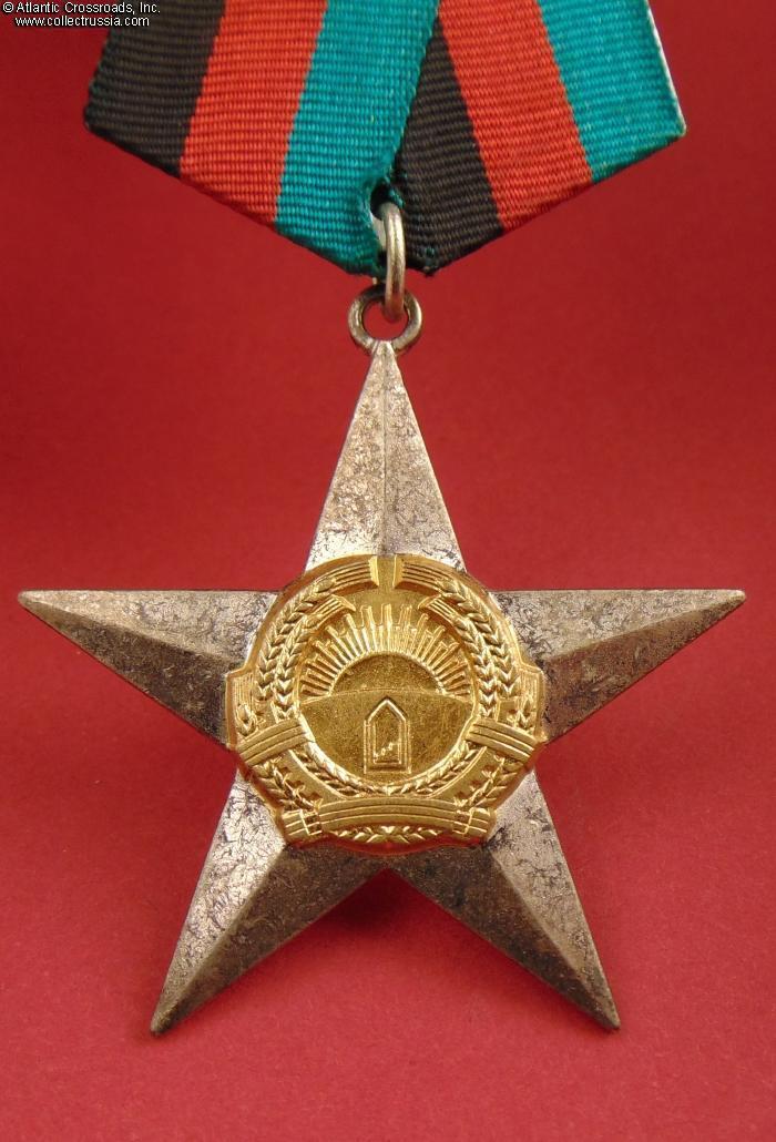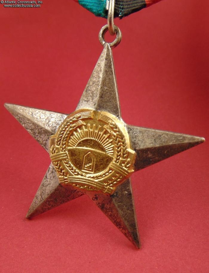 Established in 1980 and awarded for valor on the battlefield, mostly to Afghans, although few are known to have been issued to Russian advisers and other foreigners. The award was sequential: one had to be awarded with the third class of this order to become eligible to the second class. This requirement and the overall style of decoration make it very similar to the Soviet Order of Glory.