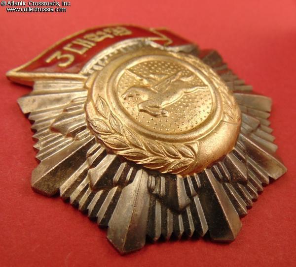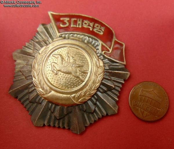 The order was established in 1986 and was apparently awarded for years afterwards. It was bestowed for "supporting the leadership of the Party and pushing forward the course of the revolution under the revolutionary slogans of ideology, technology and culture".