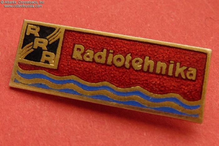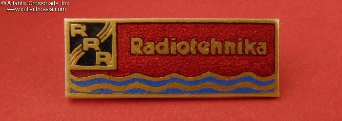 In nickel-plated brass and enamels; 12.8 x 34.1 mm. A stylized national flag of Latvian SSR with the Latvian inscription "Radiotehnika" and the factory logo with the abbreviation "RRR" (Rīgas Radio Rūpnīca). A very well-made piece.