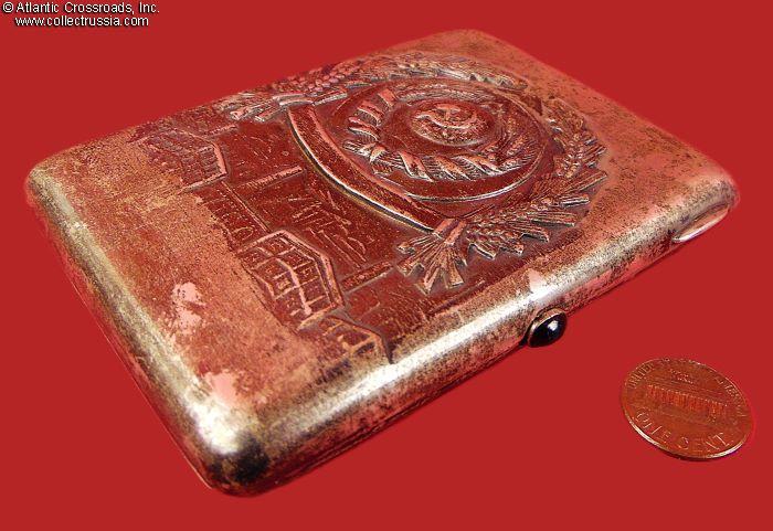 This case with the very rare early version of the Soviet State Emblem in such outstanding condition will be a gem of any collection of cigarette cases or early Soviet memorabilia.