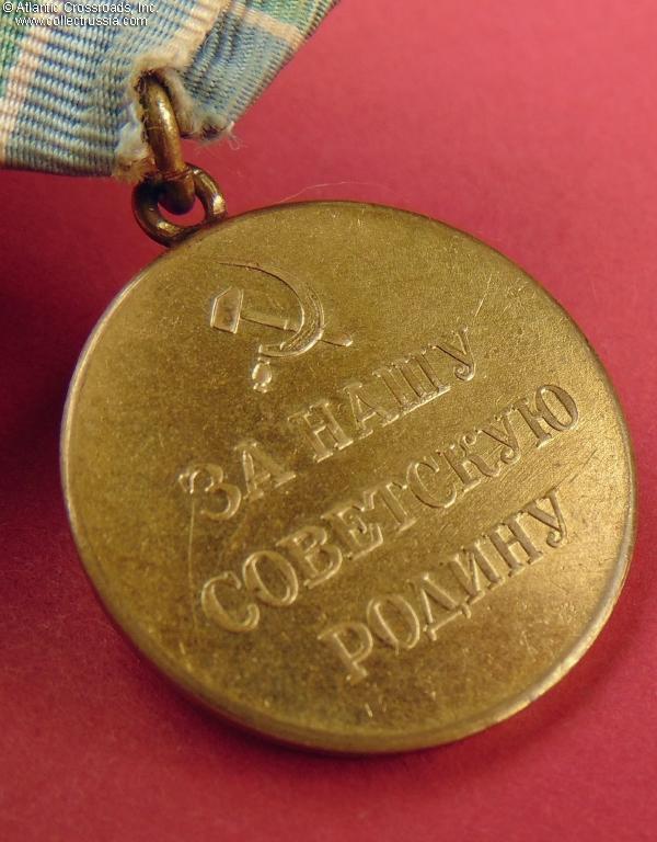 The medal comes on the original suspension device, a WW2 double-layer model in steel with a self-locking pin. The perfectly clean ribbon is old, possibly original to the medal. The connecting link appears to be of the period. This superb example of the Soviet Variation 1 Polar Region Medal is the best we've had in years and in our opinion, literally impossible to upgrade.