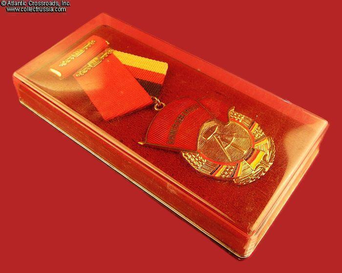 East Germany, Order of the Banner of Labor 2nd cl., circa mid-1970s-80s. in original box of earlier issue, circa 1960s-70s.