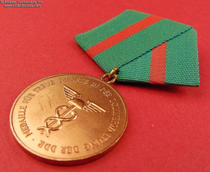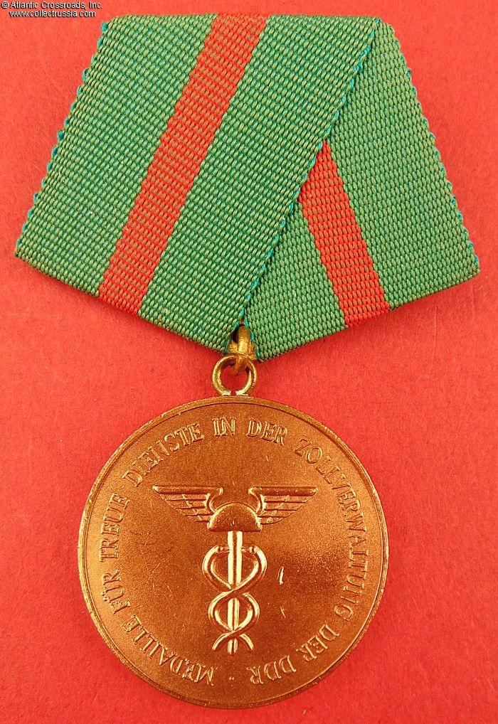 The medal (original name "Medaille für treue Dienste in der Zollverwaltung der DDR") was instituted on 12 May 1967 in six classes, to be awarded to all employees of the customs administration upon reaching a fixed, uninterrupted period of honest, conscientious, and faithful service: 5 years service (bronze), 10 years service (silver), 15 years service (gold), 20 years service (gold + 1 oak leaf), 25 years service (gold + 2 oak leaves), and 30 years service (gold + 3 oak leaves).