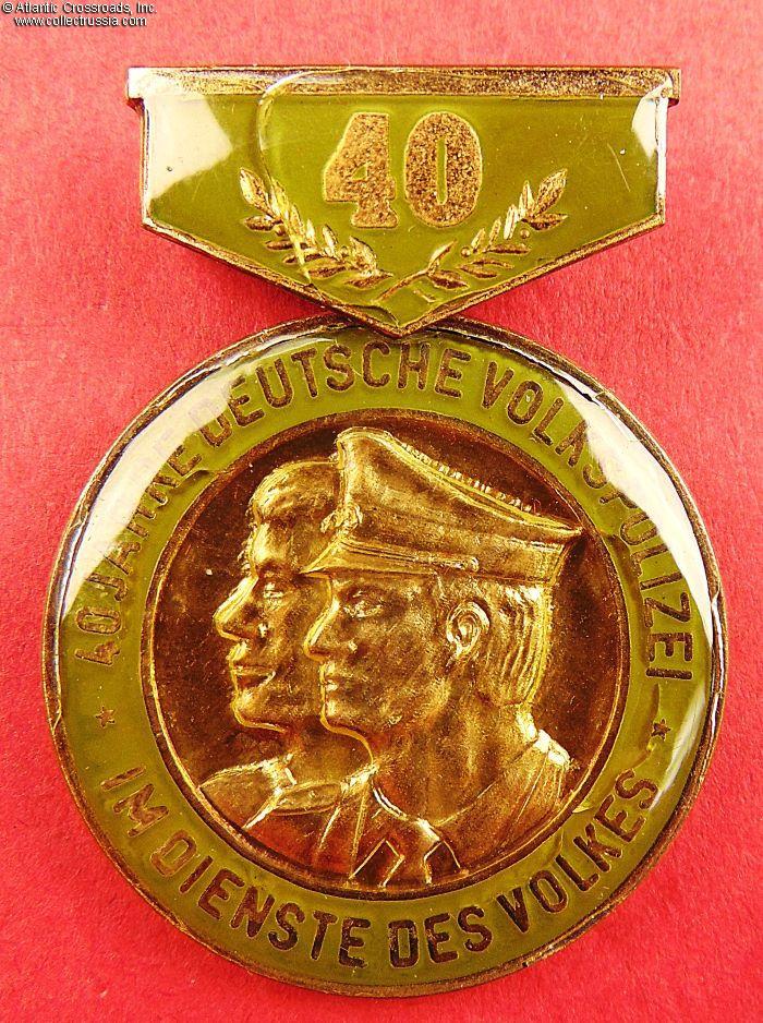 East Germany, Medal Commemorating the 40th Anniversary of Volkspolizei People's Police, 1985.