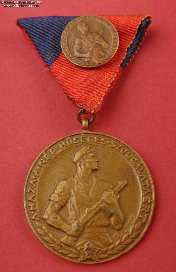 Hungary, Medal for Service in People's Militia, with miniature badge, 1960s issue.