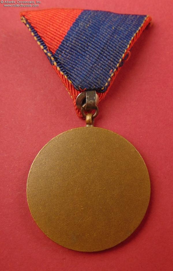 In copper; the medallion is 38.1 mm wide, with nicely detailed artwork in 3-d profile. The miniature badge is in copper, 18.4 mm wide. Excellent condition. Includes original ribbon.