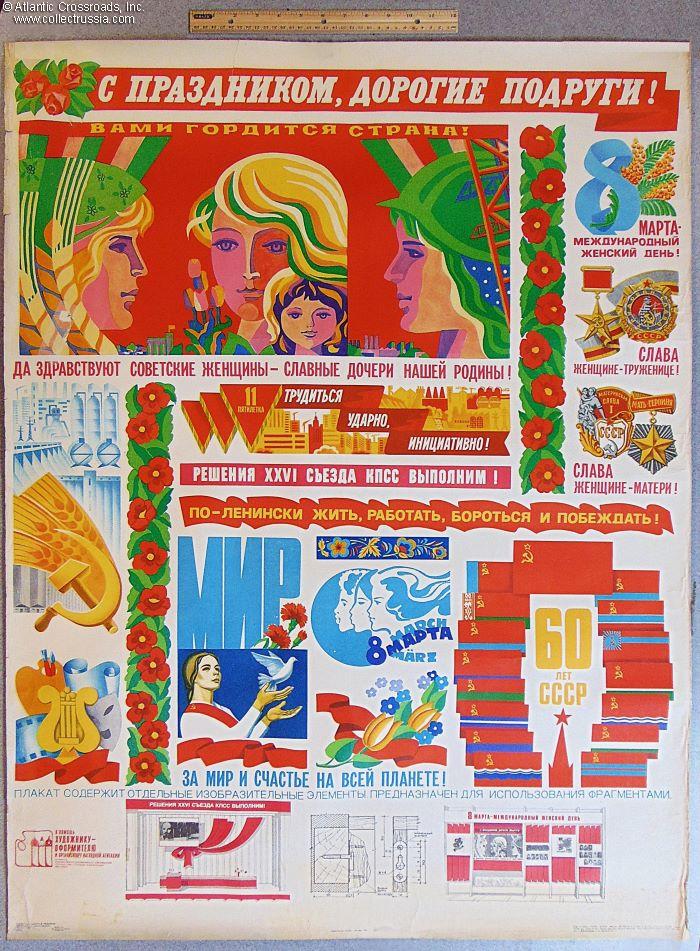 Very large at 41 ½" x 31", published by the PLAKAT ("Poster") Publishing House, Moscow, circulation 120,000. This rather unusual and scarce poster was created as a visual aid for artists wishing to skip creative thinking and just use the officially approved designs presented in the poster.