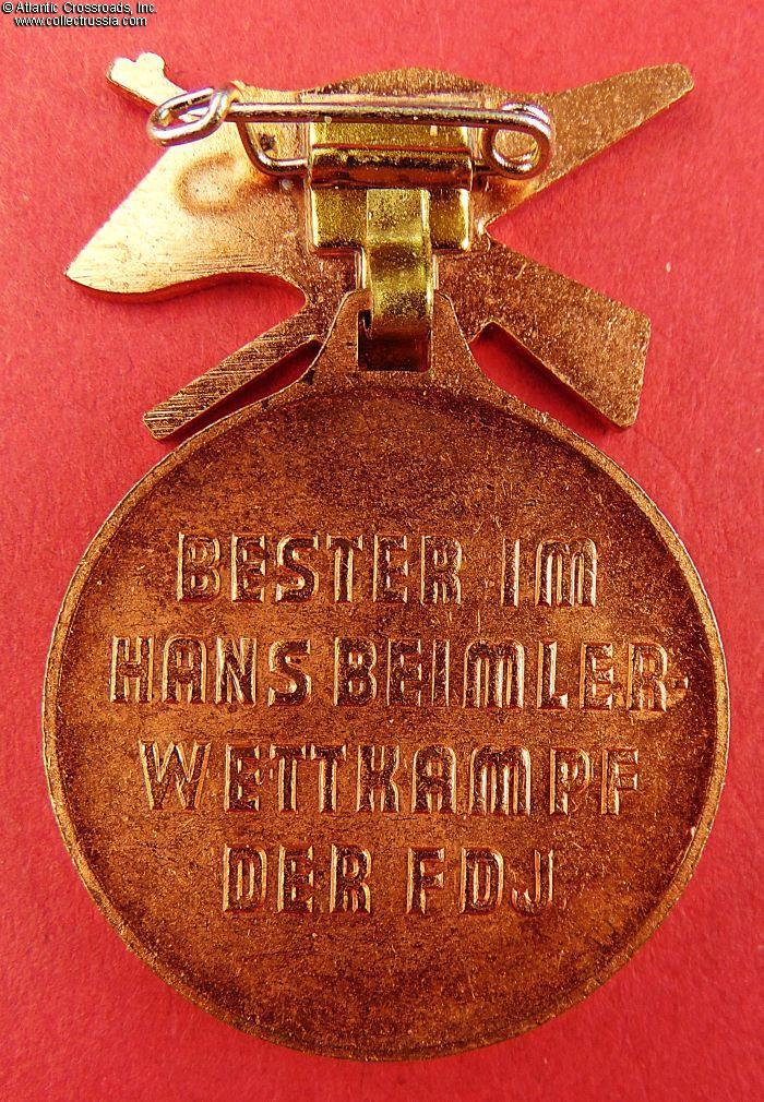 The East German Frei Deutsche Jugend organization (FDJ, equivalent to the Soviet Komsomol), dedicated their paramilitary exercises tournament to Hans Beimler and instituted this medal for the winners of these tournaments.