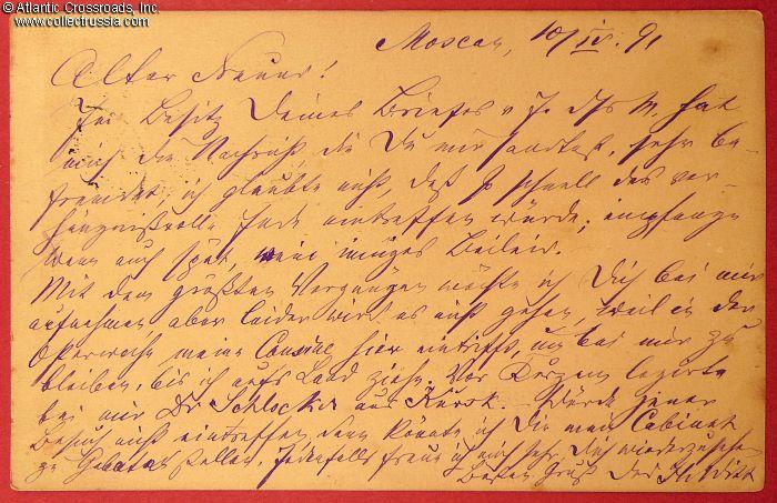 Postcard from a Moscow Doctor to a friend in Revel, modern-day Tallinn, dated 10 April 1891.